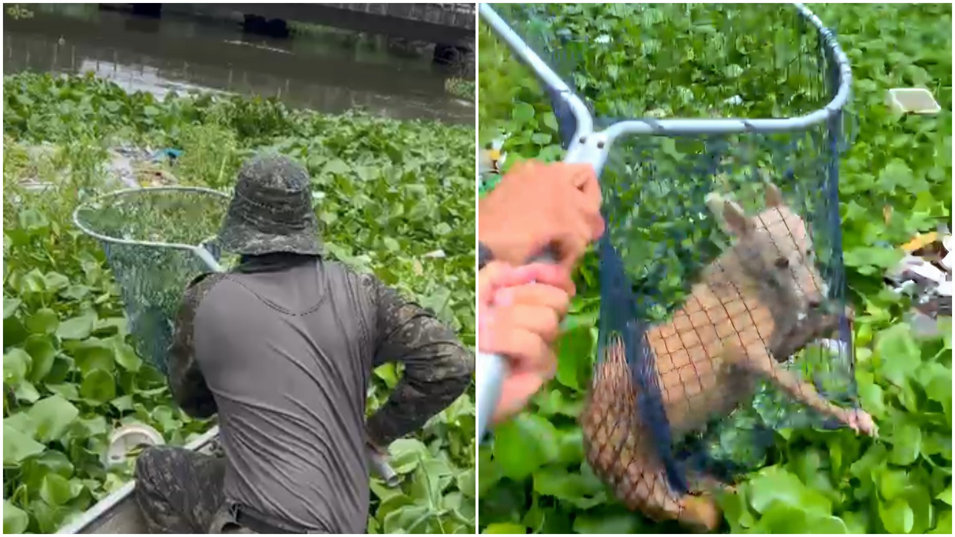 Polícia Militar resgata cachorro de dentro do rio Cocó, em Fortaleza (CE) Um cac...